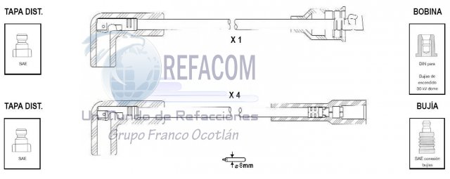 0986MG0404 CABLE BUJIA FORD TOPAZ 4CIL 2.3L 84-89 cantidad