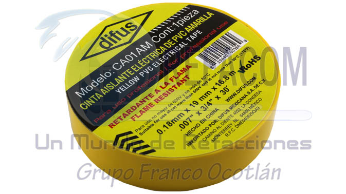 / DIFUS-CA01AM CINTA AISLANTE DIFUS AMARILLA 18MT =138006